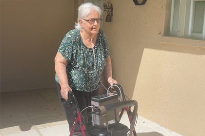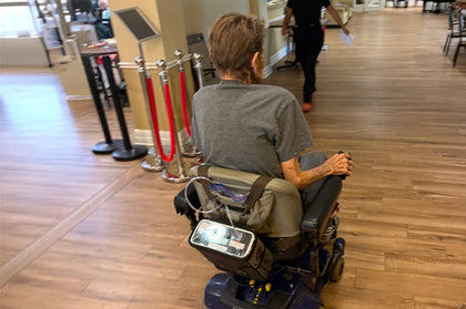“At first I used the shoulder straps but my friend couldn't access the controls so I made a bracketon the side of her electric wheelchair and strapped it to her chair where she can access everything! The other residents at the facility all want one now.”