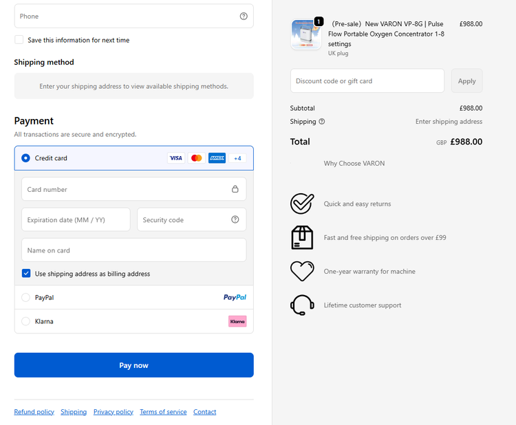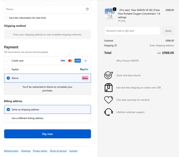 - On the checkout page, select “Klarna” as your payment method.